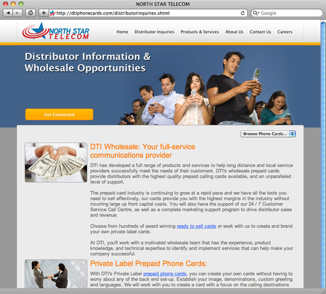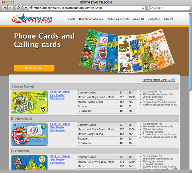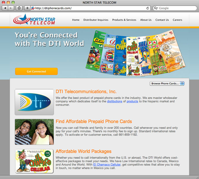 DTI offers prepaid phone card and they are master wholesaler to hispanic market and consumers.